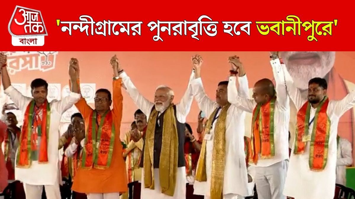 ২০২১ সালে নন্দীগ্রামে যা হয়েছিল, এবার তা হবে ভবানীপুরে। বাংলায় এসে এমনই মন্তব্য করলেন প্রধানমন্ত্রী নরেন্দ্র মোদী। বৃহস্পতিবার হলদিয়ার সভা থেকে তিনি বলেন, 'এবার নির্মম সরকারের বিদায় হবে। আর তা করে দেখাবে ভবানীপুর, করে দেখাবে গোটা বাংলা। বাংলায় পরিবর্তনের ঝড় বইছে। তৃণমূলের বিদায় নিশ্চিত। ৫ বছর আগে নন্দীগ্রাম পরিবর্তনের পথ দেখিয়েছিল। এ বার তার পুনরাবৃত্তি হবে ভবানীপুরে। গোটা পশ্চিমবঙ্গে পরিবর্তন হবে।' এই পরিবর্তনের জন্য মোদী ভরসা রাখছেন শুভেন্দু অধিকারীর উপরই।