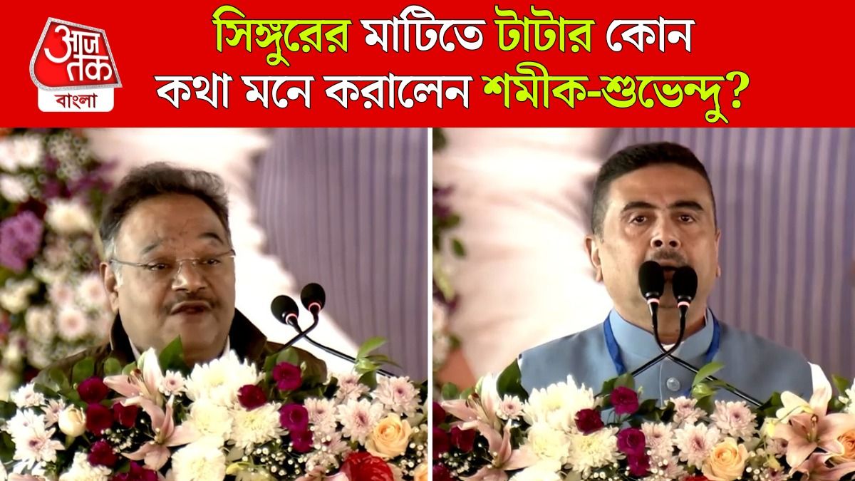 সিঙ্গুরের মাটিতে রতন টাটার কথা স্মরণ করিয়ে রাজ্যের শুভেন্দু অধিকারী এবং বিজেপির রাজ্য সভাপতি শমীক ভট্টাচার্য। বিরোধী দলনেতা বলেন, 'সিঙ্গুরের কারখানাটা জোর করে তুলে দেওয়া হল। রতন টাটা বলেছিলেন, ব্যাড এম ছেড়ে গুড এম-কে বেছে নিলাম'।