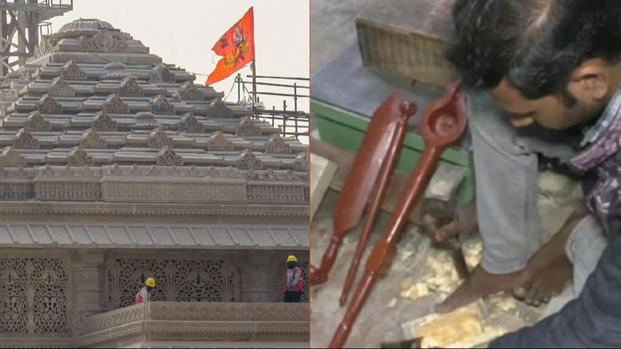 আর মাত্র সপ্তাহ তিনেক। উত্তরপ্রদেশের অযোধ্যায় তৈরি রাম মন্দিরে প্রাণ প্রতিষ্ঠা খালি সময়ের অপেক্ষা। আগামী ২২ জানুয়ারি বিশাল অনুষ্ঠানের আয়োজন করা হয়েছে। আর সেই অনুষ্ঠানেরই প্রস্তুতি চলছে জোরকদমে। আচার-অনুষ্ঠানের মাধ্যমে পুজারীরা প্রাণ প্রতিষ্ঠা করবেন। ধর্মীর প্রথা, রীতি মেনেই পুরোটা হবে। কাশীর জ্যোতিষী, পুরোহিতরা ইতিমধ্যেই পুজোর শুভ সময় জানিয়ে দিয়েছেন। শুধু তাই নয়। কাশীর দক্ষ কারিগরদের হাতও থেমে নেই। যুদ্ধকালীন তৎপরতায় অনুষ্ঠান ও পুজোর সমস্ত দ্রব্য তৈরি করছেন  তাঁরা। সেই তালিকায় রয়েছে পুজোর মণ্ডপে স্থাপিত পাঁচটি যজ্ঞের পাত্র, অরণি মন্থন এবং চারটি গদা, চক্র, পদ্ম ও শঙ্খ।