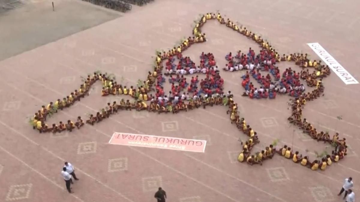 Meri Maati Mera Desh: 'মেরি মাটি- মেরা দেশ' স্লোগান, গুজরাতে মানববন্ধনে ভারতের মানচিত্র