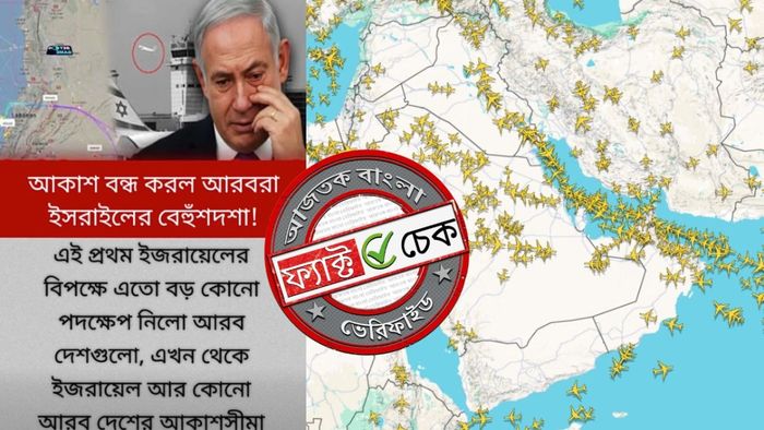 সোশ্যাল মিডিয়ায় এই ভাইরাল পোস্টটি নজর আসার পর আমরা ফ্লাইট রেডার ২৪-এ (এমন একটি অ্যাপ যেখানে বিশ্বের সকল যাত্রীবাহী প্লেন চলাচলের লাইভ আপডেট দেখা যায়) যখন আরবের আকাশসীমায় থাকা বিমানগুলিকে লক্ষ্য করি তখন সেখানে ইজরায়েলের রাজধানী তেল আবিব-গামী বিমানও দেখা যায়।