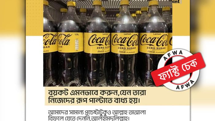 বয়কট ট্রেন্ডের মুখে পড়ে নিজেদের মোড়ক পরিবর্তন করে হলুদ করেনি কোকা-কোলা। ভাইরাল ছবিটি আসলে কোকা-কোলার লেমন ফ্লেভারের জিরো সুগার কোকের বোতলের।