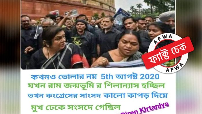 ছবিটি ২০২০ সালে ৫ অগস্টের যেদিন রাম মন্দিরের শিলান্যাস হচ্ছিল সেদিন কংগ্রেস সাংসদরা সংসদে কালো পোশাক পরে বিরোধিতা করছিলেন।