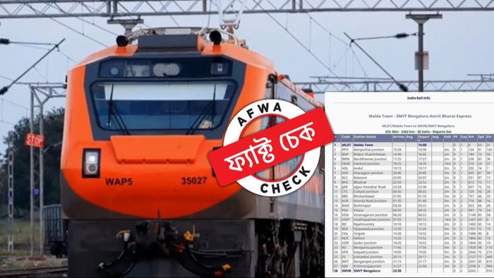 এই জল্পনার মধ্যে সোশ্যাল মিডিয়ায় ছড়িয়েছে মালদহ-বেঙ্গালুরু অমৃত ভারতের একটি সময়সূচি বা রুটচার্ট। অর্থাৎ কখন এবং কোন কোন স্টেশনে এই ট্রেন থামবে তার একটি পূর্ণাঙ্গ সূচি ফেসবুকে ঘুরছে। যা পোস্ট করে লেখা হয়েছে, "মালদা ব্যাঙ্গালোরের মধ্যে চালু হতে যাওয়া অমৃত ভারত এক্সপ্রেস ট্রেনের সময়সূচী" (পোস্টের বানান অপরিবর্তিত)
