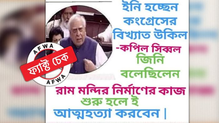 কিন্তু ইন্ডিয়া টুডে ফ্যাক্ট চেক টিম তদন্ত করে দেখেছে যে, রাম মন্দির নির্মাণ হলে আত্মহত্যা করবেন এমন কোনও মন্তব্য, কোনদিন কপিল সিব্বল করেননি। যদিও রাম মন্দির নিয়ে তিনি বিভিন্ন রকম ভাবে আক্রমণ করেছেন বিজেপি, সংঘ পরিবার ও মোদী-শাহকে।