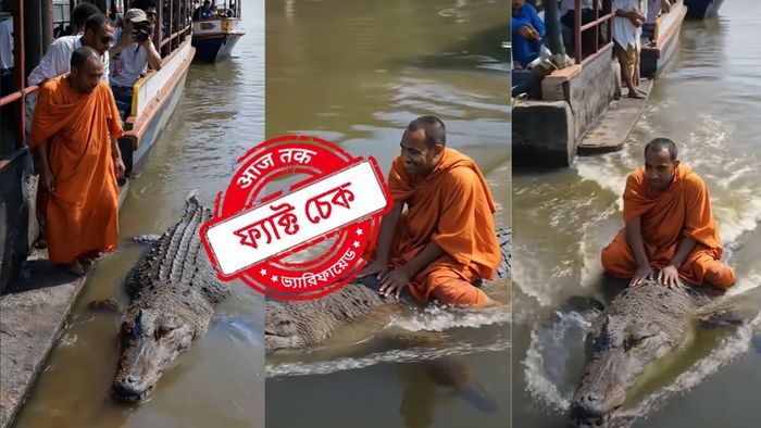 ভাইরাল ভিডিওটি ভালোভাবে লক্ষ্য করলে একটি বড় অসামঞ্জস্য দেখা যায়। ওই তথাকথিত সন্ন্যাসী যখন কুমিরের পিঠে চেপে জলপথ পাড়ি দিচ্ছেন, তখন তাঁর বাঁ হাতের আঙুলে মোট ৪টি আঙুল দেখতে পাওয়া যায়। এই ধরনের বিষয় ফাঁক সাধারণত এআই-দ্বারা তৈরি ভিডিওতে দেখা যায়।