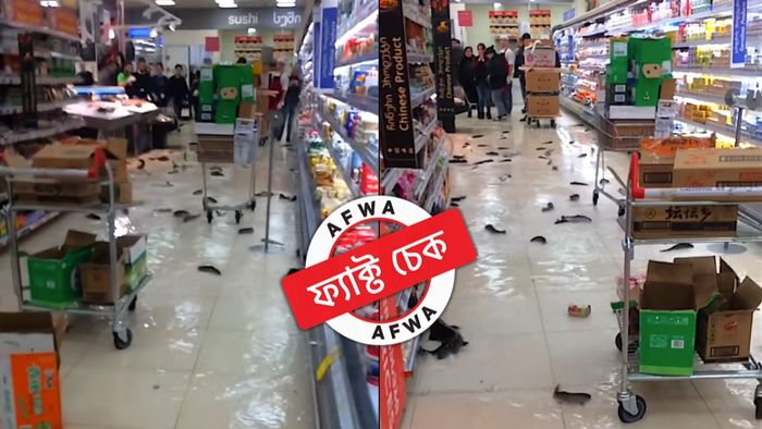 এই আবহে সোশ্যাল মিডিয়ায় একটি ভিডিও বেশ ভাইরাল হতে শুরু করেছে। ভিডিওতে দেখা যাচ্ছে, একটি সুপার মার্কেটের ভিতরের ফ্লোরে জল জমে রয়েছে এবং সেখানে বেশ কিছু মাছ সাঁতার কেটে বেড়াচ্ছে। ভিডিওটি শেয়ার করে অনেকেই একে দুবাইয়ের ঘটনা বলে দাবি করছেন।