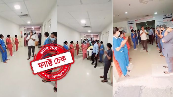 এই আবহে একটি ভিডিও শেয়ার করা হয়েছে সোশ্যাল মিডিয়ায়। এই ভিডিওতে দেখা যাচ্ছে, কোনও একটি হাসপাতাল থেকে স্ট্রেচারে বের করে আনা হচ্ছে জনৈক ব্যক্তিকে। এবং ওই স্ট্রেচারের সামনে থাকা ব্যক্তি, এবং হাসপাতালের বাকি নার্স ও কর্মীরা হাতজোড় করে নমস্কার জানাচ্ছেন। ভিডিওটি শেয়ার করে তা আরজি কর হাসপাতালের বলে দাবি করা হচ্ছে।
