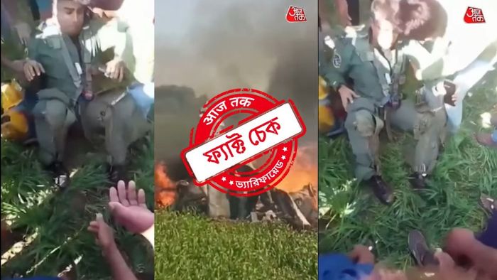এই ভিডিওতে কিছু ব্যক্তির জটলাকে ভারতীয় বায়ুসেনার এক পাইলটকে মাটি থেকে তুলতে দেখা যাচ্ছে। পাশেই এক যুদ্ধবিমান বিধ্বস্ত হয়ে পড়ে রয়েছে যেখানে আগুন জ্বলছে।