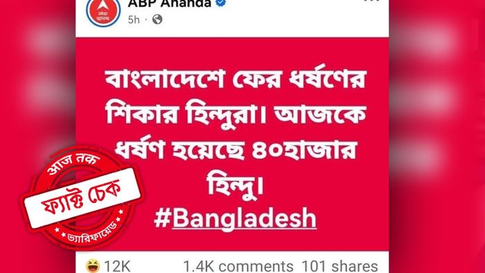 এবিপি আনন্দের ফেসবুক পোস্ট অনুযায়ী, বাংলাদেশে একদিনে ৪০ হাজার হিন্দুকে ধর্ষণ করা হয়েছে।