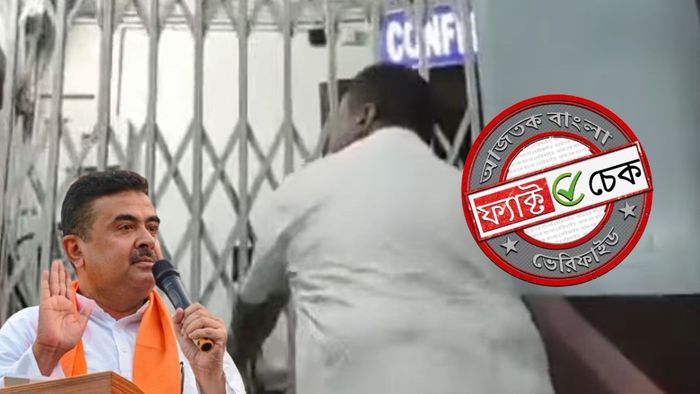 এর ক্যাপশনে লেখা হয়, “নির্বাচন কমিশনে ঢুকেই দরজা বন্ধ দেখে মেজাজ হারান শুভেন্দু অধিকারী।” যা থেকে একটা বিষয় স্পষ্ট হয়ে যায় যে এর সঙ্গে সাম্প্রতিক নির্বাচনী প্রচারের কোনও সম্পর্ক থাকা সম্ভব নয়।