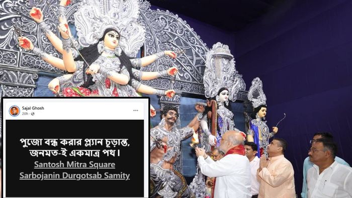 এই বিজেপি নেতা আরও যোগ করেন, 'এটা ৯০ বছরের পুজো। আমরা যাঁরা সনাতনে বিশ্বাস করি, অনেকে নবরাত্রীর উপোস করেছেন। অনেকে আগামী কয়েকদিনে উপোস করবেন। পুলিশ ভিন্ডিক্টিভ। স্থানীয় অঞ্চলের সমস্ত সিভিক ভলেন্টিয়ারদের বসিয়ে দিয়েছে। তাঁদের ধারণা সিভিকরা পুজোর পক্ষে থাকবে। তাই আমি আপনাদের কাছে হাতজোর করে সনাতনি হিন্দু ছেলে আমি জানতে চাই এই রাজ্যে পুজো পুজো করাটা অপরাধ কি না?... সেই সিদ্ধান্ত বাংলার মানুষ নেবে। এর আগেও আমরা দেখেছি সাগরে একটা অপারেশন সিঁদুর বন্ধ হয়ে গিয়েছে। পুলিস চেয়েছে যাতে একটা দুর্ঘটনা ঘটে যায়।