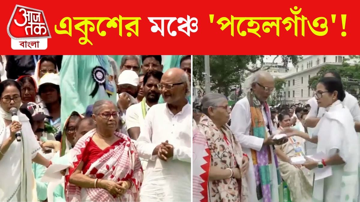 ধর্মতলায় একুশে জুলাইয়ের সভাস্থলে পৌঁছছেন তৃণমূল নেত্রী মমতা বন্দ্যোপাধ্যায়। তাঁর সঙ্গে রয়েছেন তেহট্টের শহিদ জওয়ান ঝণ্টু আলি শেখ এবং পহেলগাঁও জঙ্গি হামলায় নিহত বিতান অধিকারীর পরিবার। তাঁদের সকলকে উত্তরীয় পরিয়ে স্বাগত জানালেন মমতা। দুই পরিবারকে ১ লক্ষ টাকা সাহায্য ঘোষণা করলেন তিনি। জানালেন, দলের সব কর্মী ১ টাকা করে দিয়েছেন তাঁদের সাহায্যার্থে।
