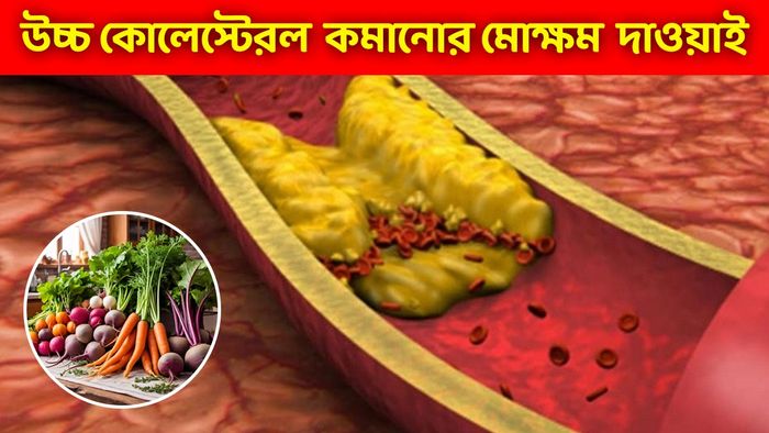 গাজর: মূলত শীতকালীন সবজি হলেও, বর্তমানে প্রায় সারা বছরই বাজারে গাজর পাওয়া যায়। গাজর বিটা-ক্যারোটিনে ভরপুর, পিত্ত অ্যাসিড উৎপাদনের সুবিধা দিয়ে কোলেস্টেরল নিয়ন্ত্রণে সাহায্য করে। গাজরে দ্রবণীয় ফাইবারও থাকে, যা এলডিএল কোলেস্টেরলের মাত্রা কমাতে অবদান রাখে