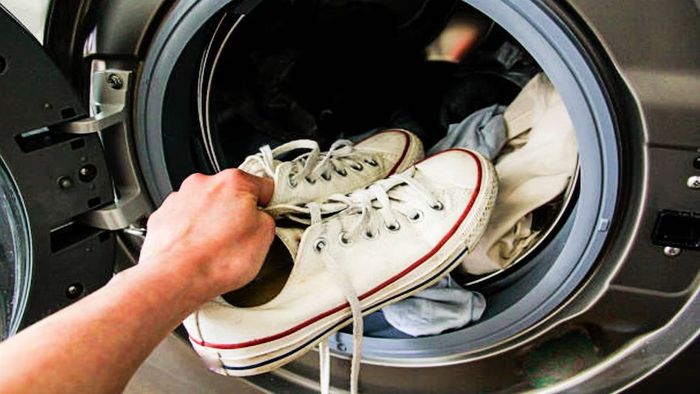যে কোনও ধরনের তরল ডিশওয়াশার দিয়ে সাদা স্নিকার্স পরিষ্কার করতে পারেন। এই প্রক্রিয়ায় কাপড়ের জুতোর জন্য সবচেয়ে ভাল। এর জন্য ১ চা চামচ লিকুইড ডিশওয়াশার উষ্ণ গরম জলে ভালোকরে মিশিয়ে নিন। এরপর, এই মিশ্রণে জুতো ডুবিয়ে, একটি বড় ব্রাশ দিয়ে দাগ পরিষ্কার করুন।