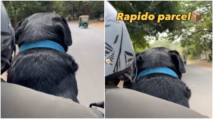 ভিডিওতে দেখা যায়, তাঁর বাইকের সামনে আরামে বসে রয়েছে একটি শান্ত স্বভাবের কালো ল্যাব্রাডর কুকুর। সাধারণ কোনও জিনিস নয়, এই ‘বিশেষ পার্সেল’ই পৌঁছে দিতে হচ্ছিল তাঁকে।