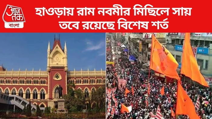 হাওড়ায় রামনবমীর মিছিল ঘিরে চলা বিতর্কের অবসান। কলকাতা হাইকোর্ট শর্তসাপেক্ষে মিছিলের অনুমতি দিল। তবে ধাতব অস্ত্র বহন করা যাবে না, শুধুমাত্র PVC দিয়ে তৈরি 'ধর্মীয় প্রতীক' রাখা যাবে। আদালতের নির্দেশ অনুযায়ী, দুই সংগঠনের ৫০০ জন করে মোট ১০০০ জন অংশ নিতে পারবেন মিছিলে।