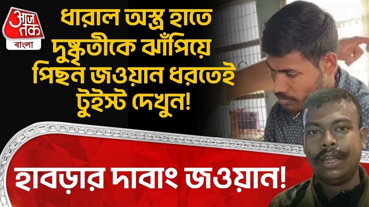 হাবড়া স্টেশন সংলগ্ন যশোর রোডের মোড়ে শনিবার সন্ধ্যায় যেন বাস্তবের মাটিতে নেমে এল সিনেমার এক টানটান অ্যাকশন দৃশ্য। সোনার দোকানে ডাকাতির উদ্দেশ্যে আসা এক দুষ্কৃতীকে অসীম সাহসিকতায় পাকড়াও করলেন এক সেনা জওয়ান। এই ঘটনায় চাঞ্চল্য ছড়িয়ে পড়েছে গোটা এলাকায়।