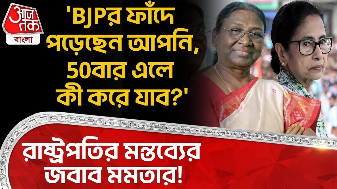 ধর্মতলায় ধর্নায় বসেছেন মুখ্যমন্ত্রী। উত্তরবঙ্গে রাষ্ট্রপতির নির্ধারিত অনুষ্ঠানে অনুপস্থিত। অনুষ্ঠানের জায়গা বদল নিয়ে প্রশাসনের সমালোচনায় সৃরব হলেন রাষ্ট্রপতি। মুখ্যমন্ত্রী ম্যাডাম এলেন না, আমি দুঃখ পেয়েছি- মন্তব্য করেন দ্রৌপদী মুর্মু। বললেন, হয়তো কোনও কিছুতে রাগ হয়েছে মমতার। এরই পাল্টা জবাব দিয়েছেন মমতা ব্যানার্জী।