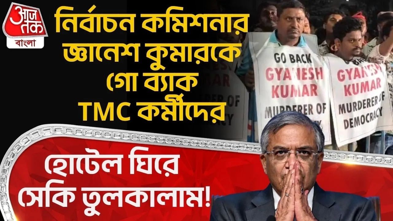 রাজ্যে বিধানসভা নির্বাচন আসন্ন। দিনক্ষণ ঘোষণা না্ হলেও শুরু হয়ে গিয়েছে প্রস্তুতি। এরই মাঝে রবিবার কলকাতায় পা রেখেছেন দেশের মুখ্য নির্বাচন কমিশনার জ্ঞানেশ কুমার-সহ নির্বাচন কমিশনের ফুল বেঞ্চ। জ্ঞানেশ কুমারকে বিমানবন্দরে স্বাগত জানান রাজ্যের মুখ্য নির্বাচনী আধিকারিক মনোজ আগরওয়াল ও রাজ্যের মুখ্যসচিব নন্দিনী চক্রবর্তী। এদিকে জ্ঞানেশ কুমার কলকাতায় পা রাখতেই বিক্ষোভের পরিবেশ। রাজারহাট নিউটাউন বিধানসভার বিধায়ক তাপস চ্যাটার্জি নেতৃত্বে TMC কর্মী সমর্থকরা কমিশনের ফুলবেঞ্চ-সহ জ্ঞানেশ কুমারের উদ্দেশে দিলেন গো ব্যাক স্লোগান। রাস্তার ধারে কালো পতাকা ও মুখে গো ব্যাক স্লোগান নিয়ে বিক্ষেোভ দেখান তাঁরা। চলুন সেই ছবি দেখে নেওয়া যাক।