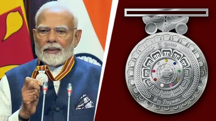 প্রধানমন্ত্রী নরেন্দ্র মোদীকে ‘মিত্র বিভূষণ’ সম্মান দিল শ্রীলঙ্কা সরকার। দুই দেশের বন্ধুত্ব আরও গভীর করা, আর সাংস্কৃতিক ও আধ্যাত্মিক ঐতিহ্য এগিয়ে নিয়ে যাওয়ায় তাঁর প্রচেষ্টার স্বীকৃতি হিসেবে এই সম্মান। এই নিয়ে এটি প্রধানমন্ত্রীর ২২ তম সর্বোচ্চ নাগরিক সম্মান।