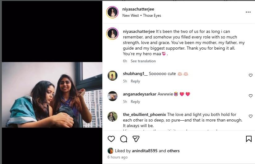 অনিন্দিতাকেই মা এবং বাবা হিসাবেই মানেন কন্যা নিয়াসা, তা এই পোস্টের মাধ্যমে জানিয়ে দিলেন। ১৯ বছরের নিয়াসা এখন সবটাই বুঝতে পারেন। শহরের এক নামজাদা কলেজে মনোবিজ্ঞান নিয়ে পড়াশোনা করছেন তিনি। মায়ের সঙ্গেই থাকেন হিরণ-কন্যা। অনিন্দিতা জানিয়েছেন যে বাবার কীর্তির কথা সামনে আসার পর মেয়ের সঙ্গে সম্পর্ক একেবারেই ভাল ছিল না। বাবা দশবার ফোন করলে হয়তো একবার ফোন ধরত। অনিন্দিতার দাবি, এখনও তিনি আইনত হিরণের স্ত্রী। আইনত বিচ্ছেদ হওয়ার আগেই ফের বিয়ে করেছেন হিরণ, অভিযোগ অনিন্দিতার।