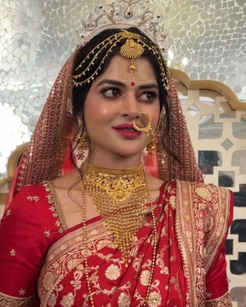 বাঙালির ভ্যালেন্টাইন্স ডে-এর দিনই মধুমিতা ও দেবমাল্য বিয়ে সেরে নিলেন। এদিন সকাল থেকেই গায়ে হলুদ, বৃদ্ধি সহ বাঙালি বিয়ের সব আচার-অনুষ্ঠান মানা চলছিল। যার ঝলক মাঝে মধ্যেই সোশ্যাল মিডিয়ায় উঠে এসেছিল। তবে মধুমিতাকে বধূবেশে দেখার জন্য মুখিয়ে ছিলেন তাঁর অনুরাগীরা। শুক্রবার একটি রাতের দিকে সোশ্যাল মিডিয়ায় ভাইরাল হয় মধুমিতার বিয়ের বেশের ছবি। টুকটুকে লাল বেনারসি, সাবেকিয়ানা গয়নায় সেজে অভিনেত্রী। এরকমটাই চেয়েছিলেন তিনি।