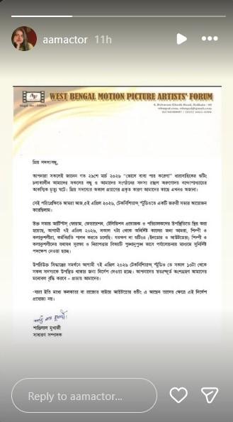 প্রসঙ্গত, আর্টিস্টস ফোরামের তরফে 'ভোলে বাবা পার করেগা' ধারাবাহিকের প্রযোজনা সংস্থা ম্যাজিক মোমেন্টসকে দুর্ঘটনার কারণ সহ নানা বিষয় নিয়ে চিঠি দেওয়া হয়েছিল। কিন্তু সন্তোষজনক উত্তর না মেলায়, গত শনিবার কলকাতার রিজেন্ট পার্ক থানায় একটি এফআইআর দায়ের করা হয়। আর প্রিয়াঙ্কা এফআইআর করেছেন তালসারি থানায়। মঙ্গলবার থেকে কর্মবিরতিতে যাচ্ছে গোটা টলিউঢ। দাবি, রাহুলের বিচার সঙ্গে শ্যুটে যথাযথ নিরাপত্তা। আর সেই নোটিশই শেয়ার করেছেন শ্বেতাও।