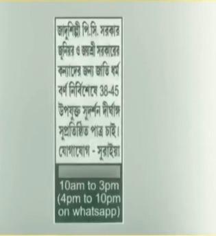 রবিবার সকাল থেকে সোশাল মিডিয়ায় ভাইরাল হয়ে যায় একটি পাত্র চাই বিজ্ঞাপনের পেপার কাটিং। পি সি সরকার ও তাঁর স্ত্রী জয়শ্রী তাঁদের তিন কন্যার জন্য পাত্র খুঁজছেন। তিন মেয়ের জন্য সুদর্শন, দীর্ঘাঙ্গী পাত্র চেয়েছেন তাঁরা। আর এই পেপার কাটিং নিমেষের মধ্যে ভাইরাল সোশ্যাল মিডিয়াতে। তবে মুমতাজ এটা জানাতে ভুললেন না যে সুপাত্রের সন্ধান পেলে যেন অবশ্যই যোগাযোগ করা হয় তাঁদের সঙ্গে।