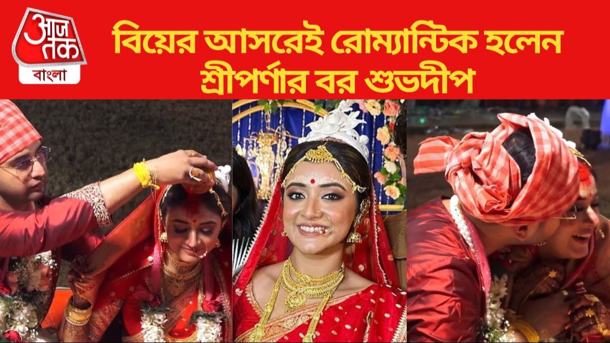 শ্রীপর্ণার সিঁথি সিঁদুরে রাঙিয়ে রোম্যান্টিক শুভদীপ। বউকে কাছে টেনে চুমুতে ভরিয়ে দিলেন। কখনও গালে কখনও কপালে একের পর চুমু খেতেই থাকলেন শ্রীপর্ণার বর। নতুন কনে তখন লাজে রাঙা। এটাই ছিল শ্রীপর্ণার বিয়ের সেরা মোমেন্ট। দুজন দুজনকে সামনে থেকে দেখে খুবই এক্সাইটেড হয়ে পড়েন। শ্রীর্পণা-শুভদীপের বিয়েতে খাওয়া-দাওয়ার ছিল এলাহি আয়োজন।