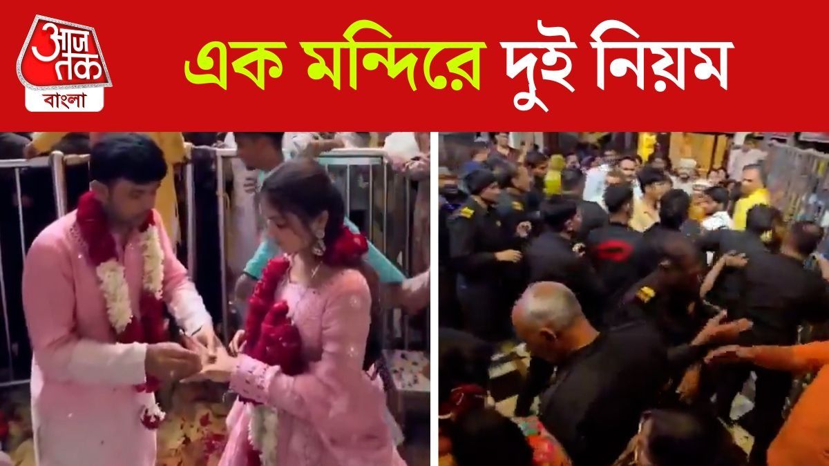 মথুরার বাঁকে বিহারী মন্দিরের দুটি ভিডিও সোশ্যাল মিডিয়ায় ভাইরাল। আকাশ-পাতাল পার্থক্য। মন্দিরের বৈষম্যকে প্রকট করে দিয়েছে। সাধারণ ভক্তরা লাইনে দাঁড়িয়ে। মন্দিরের নিরাপত্তারক্ষীদের হাতে কার্যত মারধর খেতে হচ্ছে তাঁদের। ঠিক উল্টো ছবি ধরা পড়েছে অন্য ভিডিওটিতে। সেখানে দেখা যাচ্ছে, মন্দিরেরই একটি ভিভিআইপি আংটি বদল করছে এক দম্পতি। কোনও হুড়োহুড়ি নেই, নেই কোনও বাধা। নিশ্চিন্তে আংটি বদল সেরে আশীর্বাদ নিতে দেখা যাচ্ছে তাঁদের।