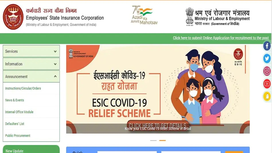 প্রতিকি ছবিESIC Recruitment 2022: কর্মচারী রাজ্য বিমা কর্পোরেশন (ESIC) আপার ডিভিশন ক্লার্ক (UDC), স্টেনোগ্রাফার এবং মাল্টি-টাস্কিং স্টাফ (MTS) এর ৩৮৫ টি পদের জন্য অনলাইন আবেদন আমন্ত্রণ জানিয়েছে। আগ্রহী এবং যোগ্য প্রার্থীরা ১৫ ফেব্রুয়ারি ২০২২ পর্যন্ত অনলাইন মোডের মাধ্যমে আবেদন জমা দিতে পারেন। আগ্রহী এবং যোগ্য প্রার্থীরা অফিসিয়াল ওয়েবসাইট esic.nic.in এর মাধ্যমে আবেদন করতে পারেন।