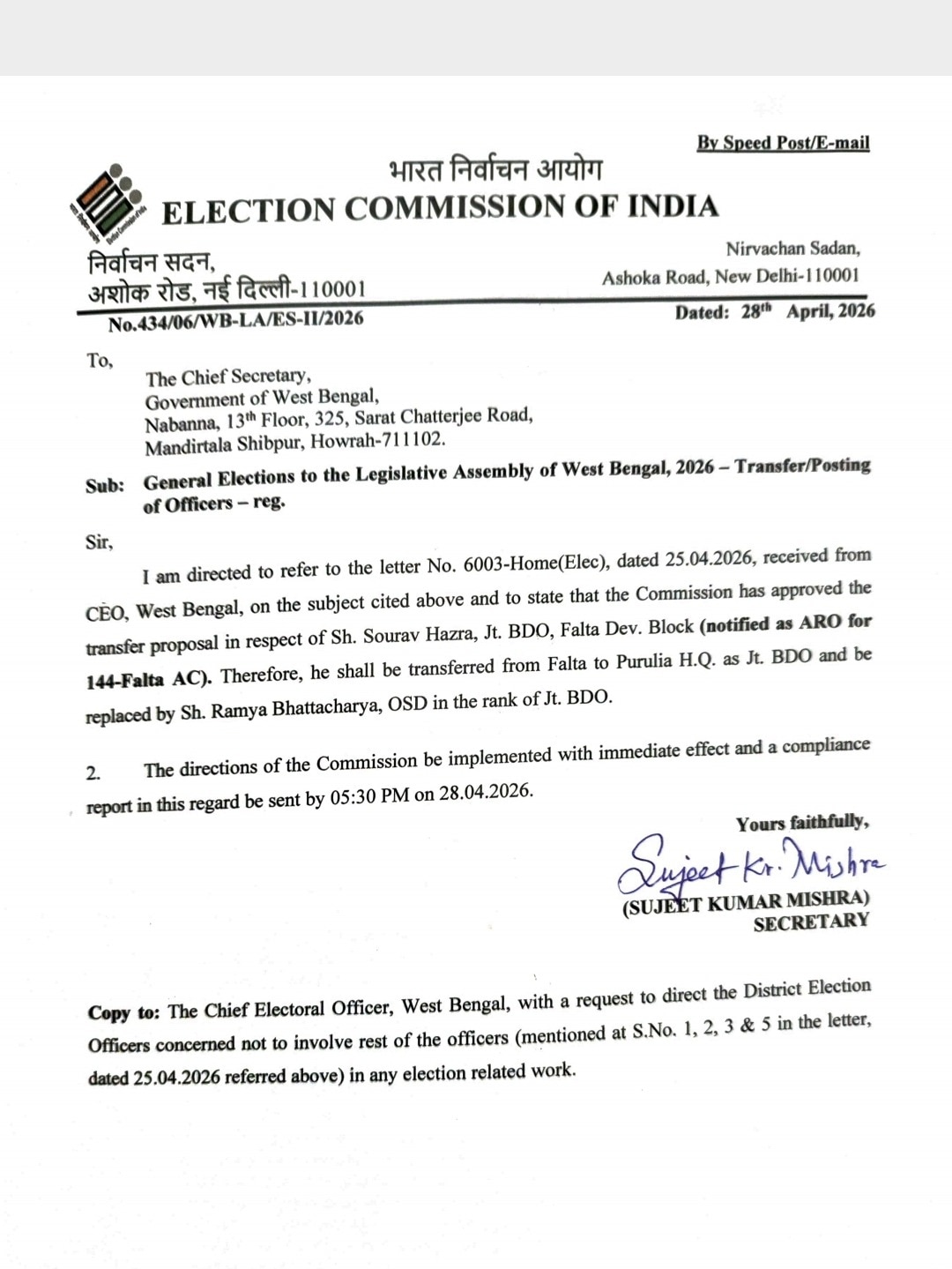 ফলতা বিধানসভা কেন্দ্রের সহকারী রিটার্নিং অফিসারের দায়িত্বও সামলাচ্ছিলেন তিনি। তবে সে দায়িত্ব থেকেও অব্যাহতি দেওয়া হয়েছে এদিন বিকেল সাড়ে ৫টার পর।