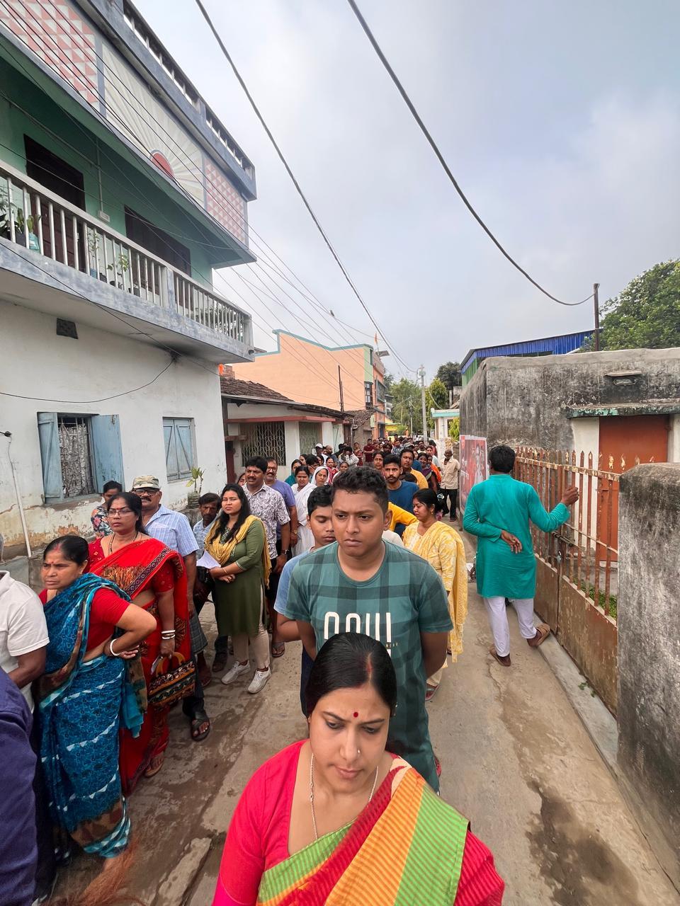 পশ্চিমবঙ্গ বিধানসভা নির্বাচনের প্রথম পর্ব শুরু হওয়ায় আজ মালদা জেলায় ভোটারদের মধ্যে ব্যাপক উৎসাহ দেখা যাচ্ছে। মালদার কোতোয়ালি প্রাথমিক বিদ্যালয়ের ভোটকেন্দ্র থেকে পাওয়া ছবিতে ভোট দেওয়ার জন্য দীর্ঘ লাইন এবং বিপুল জনসমাগম দেখা যাচ্ছে।