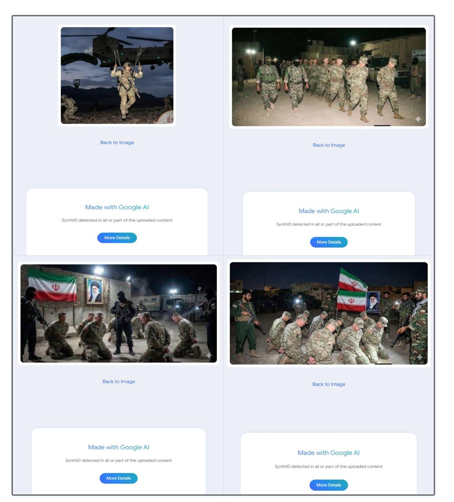 এরপর ছবিগুলিকে সিন্থআইডি ডিটেক্টরের মাধ্যমে পরীক্ষা করা হয়। এটি এমন একটি টুল যা গুগল তৈরি করেছে এআই দ্বারা তৈরি কোনও ছবি বা ভিডিও-র সত্যতা যাচাই করার জন্য।