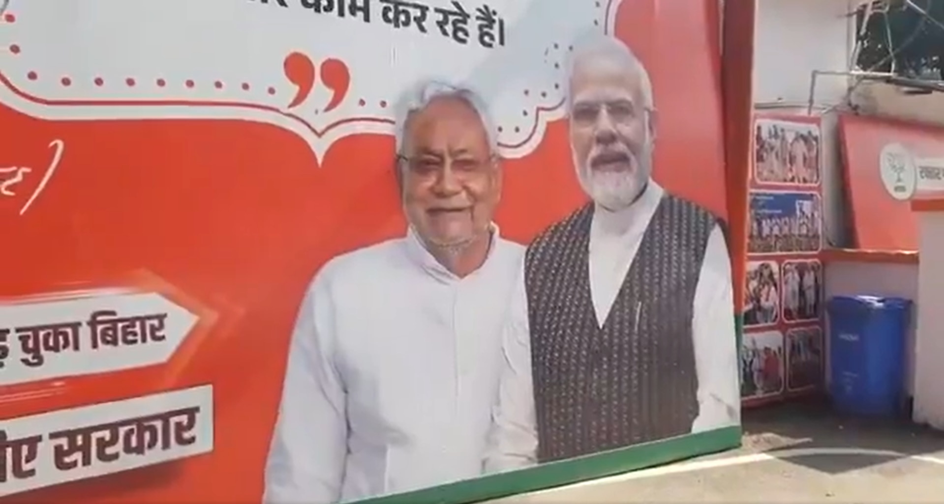 বিহারে বিজেপি বর্তমানে হারের ভয়ে ব্যানার-পোস্টার থেকে নরেন্দ্র মোদীর ছবি সরিয়ে নীতীশ কুমারের ছবি ব্যবহার করছে।