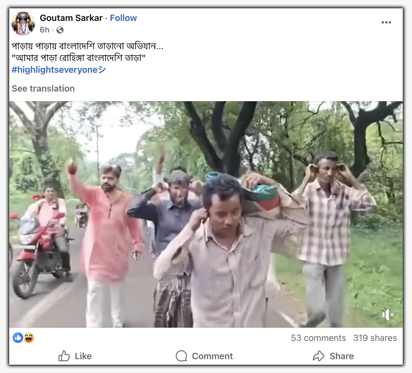 এসআইআর প্রক্রিয়ার আবহে ভিডিওটি পোস্ট করে লেখা হয়েছে, “পাড়ায় পাড়ায় বাংলাদেশি তাড়ানো অভিযান... "আমার পাড়া রোহিঙ্গা বাংলাদেশি তাড়া"।”