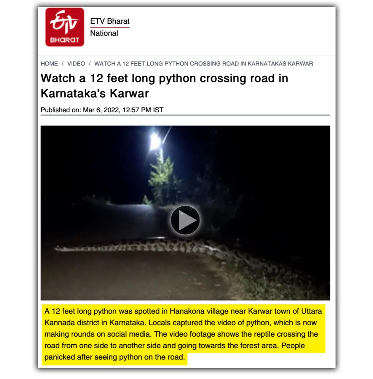 প্রতিবেদনে লেখা হয়, এটি আসলে একটি ১২ ফুট লম্বা পাইথন। সাপটিকে কর্নাটকের উত্তর কানাড়া জেলার হানাকোনা গ্রামের কাছে দেখতে পাওয়া গিয়েছিল। সেখানকার স্থানীয়রাই ভিডিওটি তুলে সোশ্যাল মিডিয়ায় দেন যা পরে ভাইরাল হয়ে যায়। সেখানে আরও লেখা হয় যে পাইথনটিকে একটি ফরেস্ট এরিয়াতে দেখা গিয়েছিল।