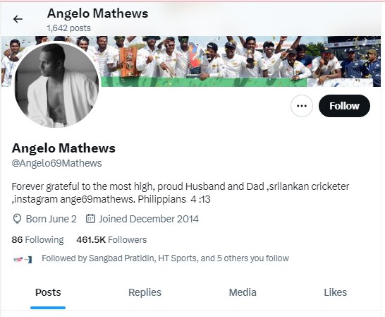 এরপর ম্যাথিউজের আসল এক্স অ্যাকাউন্টটিও খুঁজে পাওয়া যায়।