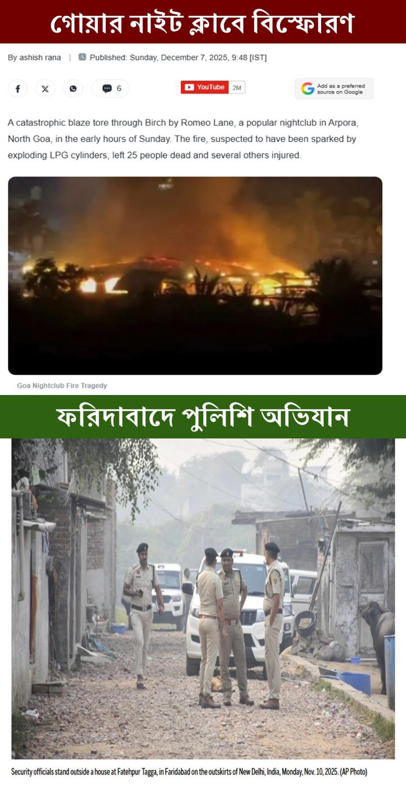 অন্যদিকে, ভাইরাল পোস্টের দ্বিতীয় এবং তৃতীয় ছবি দুটি নিয়ে গুগলে রিভার্স ইমেজ সার্চ করলে জানা যায়, শুধুমাত্র প্রথম ছবিটিই মালকানগিরির ঘটনার। দ্বিতীয়টি গত ৬ ডিসেম্বর গোয়ার একটি নাইটক্লাবে সিলিন্ডার বিস্ফোরণের ঘটনার, এবং তৃতীয়টি গত ১৩ নভেম্বর দিল্লি গাড়ি বিস্ফোরণের পর হরিয়ানার ফরিদাবাদে পুলিশের তদন্ত সম্পর্কিত। এগুলোর সঙ্গে ওড়িশার ঘটনার কোনও সম্পর্ক নেই।