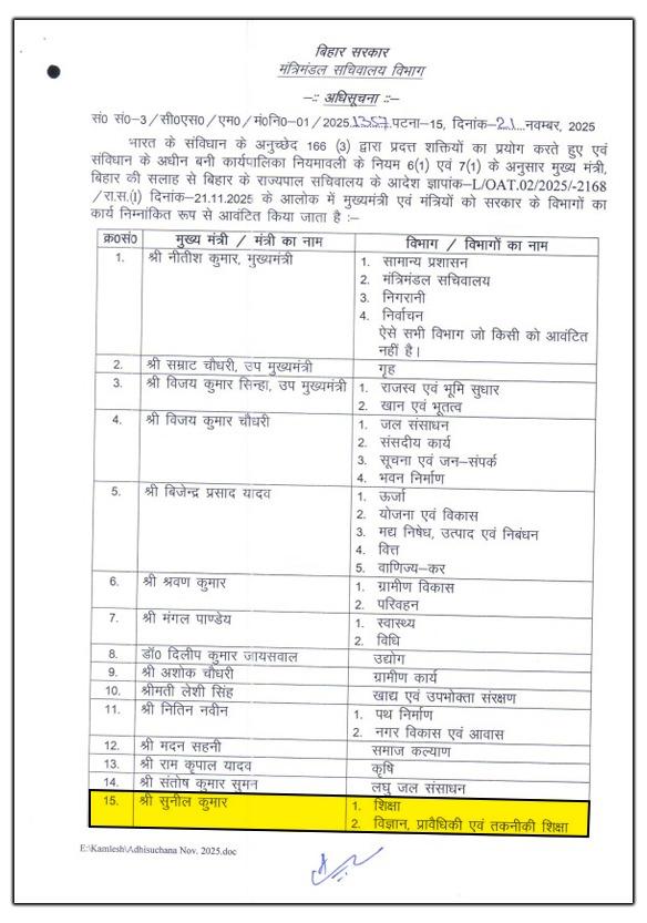 এরপর বর্তমানে বিহার সরকারের শিক্ষা মন্ত্রকের দায়িত্ব কোনও বিধায়কে দেওয়া হয়েছে সে বিষয়ে অনুসন্ধান চালালে ২০২৫ সালের ২১ নভেম্বর নবভারত টাইমসের একটি প্রতিবেদন পাওয়া যায়। সেই প্রতিবেদন থেকে জানা যায়, ২০২৫ সালের বিহার বিধানসভা নির্বাচনে জয়লাভের পর মুখ্যমন্ত্রী নীতিশ কুমার-সহ মন্ত্রিসভার মোট ২৭ জন মন্ত্রী শপথগ্রহণ করেছেন। আর এই ২৭ জনের মধ্যে শিক্ষা মন্ত্রকের দায়িত্ব পেয়েছেন প্রাক্তন আইপিএস অফিসার তথা ভোরে বিধানসভার জেডিইউ বিধায়ক সুনীল কুমার। তিনি এর আগের মন্ত্রীসভাতেও শিক্ষামন্ত্রীর দায়িত্ব পালন করেছিলেন,পুনরায় তাঁকে এই পদে বসানো হয়েছে। এখানে উল্লেখ্য, এই ২৭ জন মন্ত্রীর তালিকায় বিভা দেবীর নাম পাওয়া যায়নি। অর্থাৎ তিনি কোনও মন্ত্রকের দায়িত্ব পাননি।
