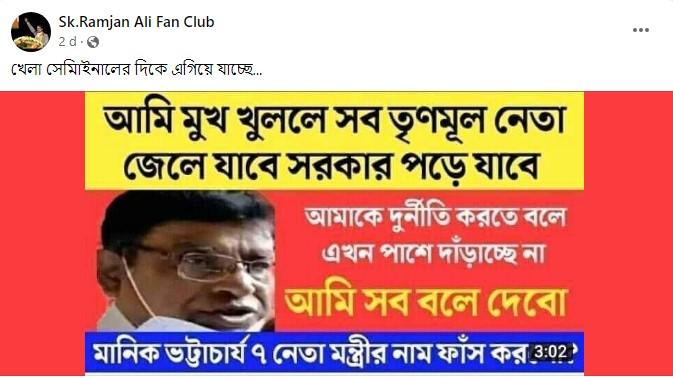 এরপরই সোশ্যাল মিডিয়ায় প্রবল গুঞ্জন শুরু হয় যে, ইডির সামনে তৃণমূল নেতাদের বিরুদ্ধে মুখ খোলার হুমকি দিয়েছেন মানিক ভট্টাচার্য। সঙ্গে শেয়ার হতে থাকে এই ধরনের পোস্ট ও স্ক্রিনশট।