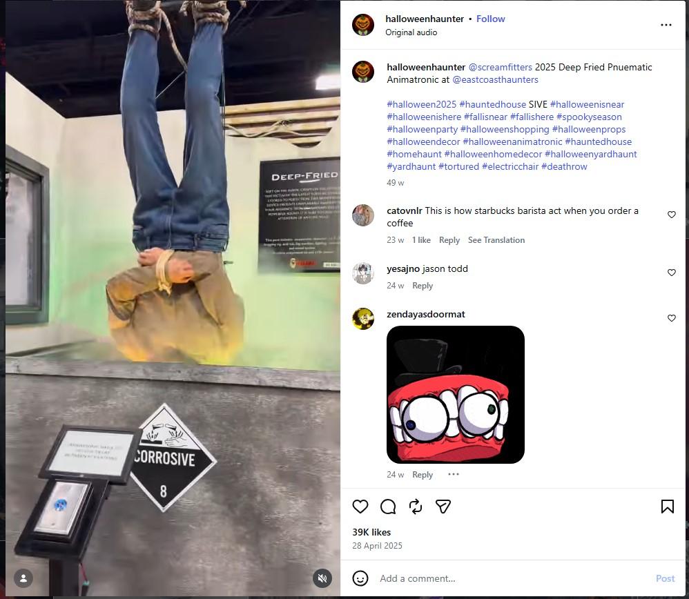 উক্ত সূত্র ধরে এরপর ‘Screamfitters’-এর অফিশিয়াল ইনস্টাগ্রাম হ্যান্ডেলটি ভালো করে পর্যবেক্ষণ করলে চলতি বছরের ২৮ মার্চ অন্য একটি ভিডিও পাওয়া যায়। সেই ভিডিও-র সঙ্গে ভাইরাল ভিডিও-র সাদৃশ্য রয়েছে। ভিডিও-র ক্যাপশন থেকে জানা যায়, সেটি ‘Deep Fried’-এর আপডেটেড বা উন্নত সংস্করণের দৃশ্য। এরপর হ্যান্ডেলটির বায়োতে প্রাপ্ত সংস্থার ওয়েবসাইটটি ভালো করে পর্যবেক্ষণ করলে সেখানে ‘Deep Fried DF25’ নামে এই একই পণ্য ৬ হাজার ১৯৯ ডলারে বিক্রির জন্য তালিকাভুক্ত থাকতে দেখা যায়। পাশাপাশি, ‘Screamfitters’-এর অফিশিয়াল ওয়েবসাইটে হ্যালোইন উপলক্ষ্যে তৈরি বিভিন্ন ভৌতিক ও অ্যানিমাট্রনিক পণ্য বিক্রি করা হয়।