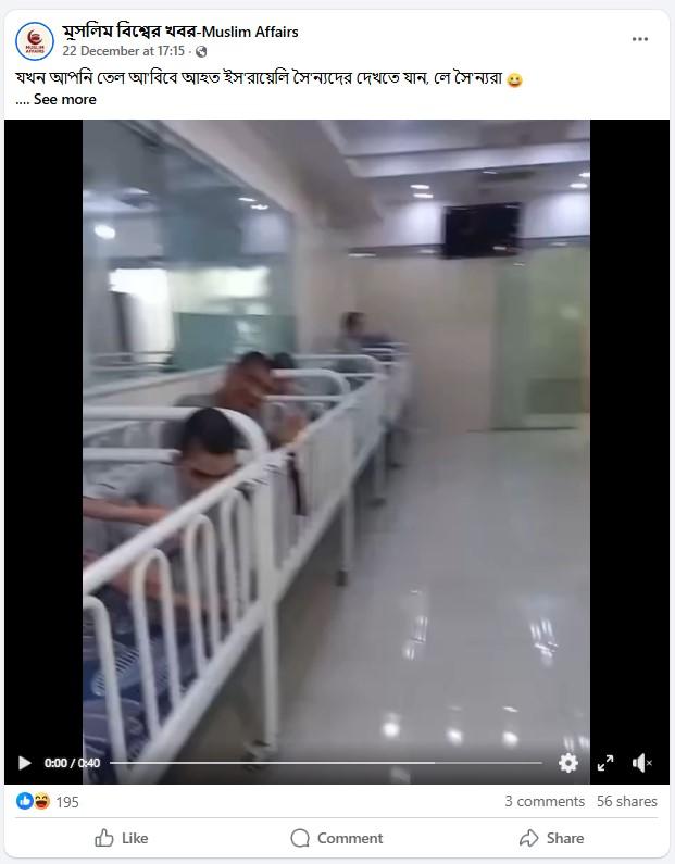 এর থেকে প্রামণ হয় যে, মানসিক ভারসাম্য হারিয়ে চিকিৎসাধীন ইজরায়েলি সেনাদের দৃশ্য দাবিতে ছড়ানো হচ্ছে ইরানের অসম্পর্কিত ভিডিও।