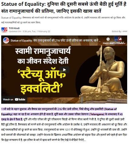এ বার স্ট্যাচু অব ইকুয়ালিটি নিয়ে একটি পোস্টকার্ড সোশ্যাল মিডিয়ায় ভাইরাল হয়েছে। পোস্টকার্ডের মাধ্যমে দাবি করা হচ্ছে, গুজরাটে সর্দার বল্লভ ভাই প্যাটেলের স্ট্যাচু অব ইউনিটির পর কেন্দ্রীয় সরকার নাকি আরেকটি স্ট্যাচু তৈরি করছে, এবং সেটি বানাতে ১ হাজার কোটি টাকা খরচ করা হচ্ছে।