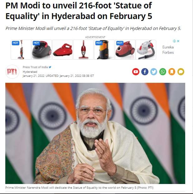 ২৭০০ কোটি টাকা দিয়ে স্ট্যাচু অব ইউনিটি তৈরি করার পর এ বার ১০০০ কোটি টাকা খরচ করে স্ট্যাচু অব ইকুয়ালিটি তৈরি করল নরেন্দ্র মোদী সরকার।
