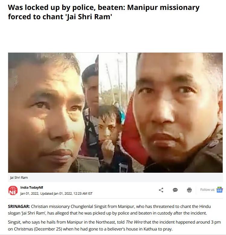 এরপর উক্ত সূত্র ধরে পরবর্তী অনুসন্ধান চালালে ২০২১ সালের ৩০ ডিসেম্বর ভাইরাল ভিডিও-র স্ক্রিনশট-সহ একাধিক সংবাদমাধ্যমে এই সংক্রান্ত প্রতিবেদন পাওয়া যায়। সেই সব প্রতিবেদন থেকে জানা যায়, জম্মু ও কাশ্মীরের কাঠুয়া জেলায় ‘জয় শ্রী রাম’ না বলার কারণে বড়দিনের দিন মণিপুরের এক খ্রিস্টান পুরোহিতকে হেনস্থা করে কয়েকজন অজ্ঞাত ডানপন্থী সমর্থক। দুষ্কৃতীরা চুংলেনলাল সিংসিত নামক ওই মণিপুরের খ্রিস্টান পুরোহিতের বিরুদ্ধে এলাকার বাসিন্দাদের 'ধর্মান্তরিত' করার অভিযোগ তুলে তাঁর উপরে হামলা চালায় বলে প্রতিবেদন থেকে জানা যায়।