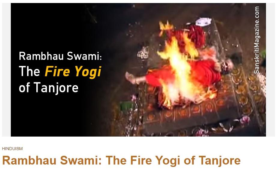 সেটিকে সূত্র ধরে এরপর আমরা "দ্য ফায়ার ইয়োগি" সম্পর্কে তথ্য জোগাড় করার চেষ্টা করি। কি-ওয়ার্ড সার্চ করে সংস্কৃতি ম্যাগাজিন নামের একটি ওয়েবসাইটের প্রতিবেদনে এই সাধুর সম্পর্কে আমরা আরও তথ্য জানতে পারি। ২০১৫ সালে প্রকাশ পাওয়া এই রিপোর্টে লেখা হয়, আগুনের উপর শুয়ে থাকা এই সাধুর নাম আসলে যোগী রাম্ভুস্বামী। তিনি তামিলনাড়ুর তাঞ্জোরের বাসিন্দা। তাঁর এই অভাবনীয় কাণ্ড নিয়ে ৪৭ মিনিটের একটি তথ্যচিত্রও রয়েছে।