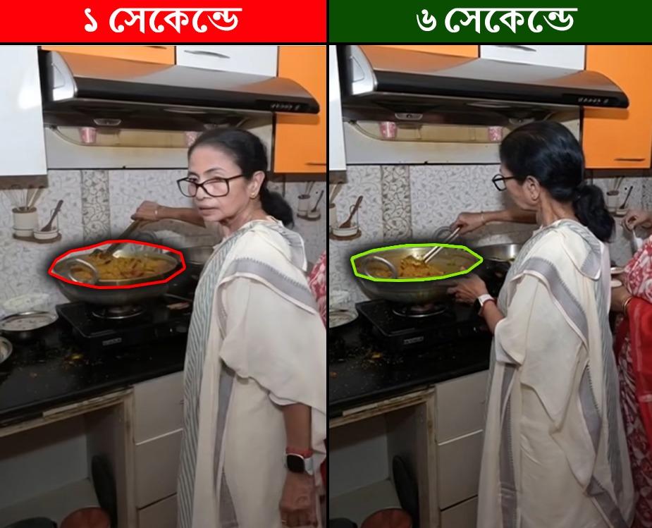 ভিডিওতে দেখা যাচ্ছে মুখ্যমন্ত্রী মমতা বন্দ্যোপাধ্যায় গ্যাসের আগুন বন্ধ রেখেই রান্না করছেন।