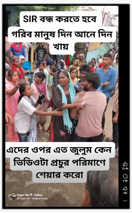 ভিডিওতে দেখা যাচ্ছে, ‘SIR’ প্রক্রিয়ার নাম করে পুলিশ দিয়ে সাধারণ গরীব মানুষের উপরে অত্যাচার করছে নির্বাচন কমিশন তথা কেন্দ্রের বিজেপি সরকার।
